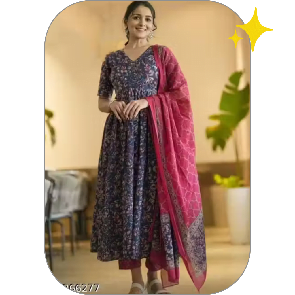Festive Wear Cotton Kurti (Blue)