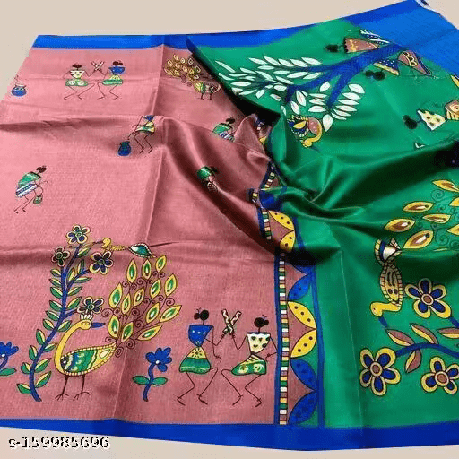 Elevate your ethnic wardrobe with this stunning Art Silk Kalamkari Printed Saree, designed to blend traditional artistry with modern elegance. Crafted from soft and smooth art silk fabric, it offers a graceful drape with a subtle sheen that enhances its rich appeal.